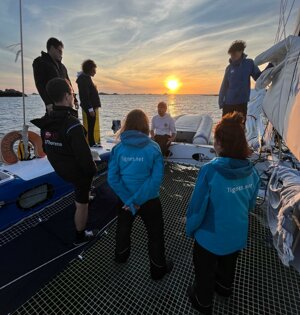 Point météo et objectifs. Vous faites connaissance avec le bateau, le reste de l’équipage (7 personnes max) et le plan d’eau pendant